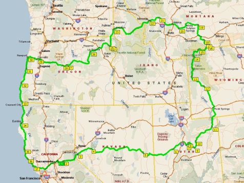 May 29, 2012tombarrington Our route. We head to Nevada on Day 1 and average about 300 miles per day. Two lane roads are best. No Interstate 80 for us. Share this: Click to share on Facebook (Opens in new window) Facebook Click to email a link to a friend (Opens in new window) Email Like Loading...