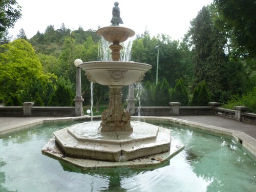 More rain yesterday so we decided to explore on foot. We walked about five miles according to Cathy’s walk app. We went through old neighborhoods of Ashland and then through Lithia Park which follows Ashland Creek, fed from Mt. Ashland which looms over the town. Lithia is a reference to mineral water. Here are the pictures from yesterday. Rain and all, we’re off to the coast this morning. More later.