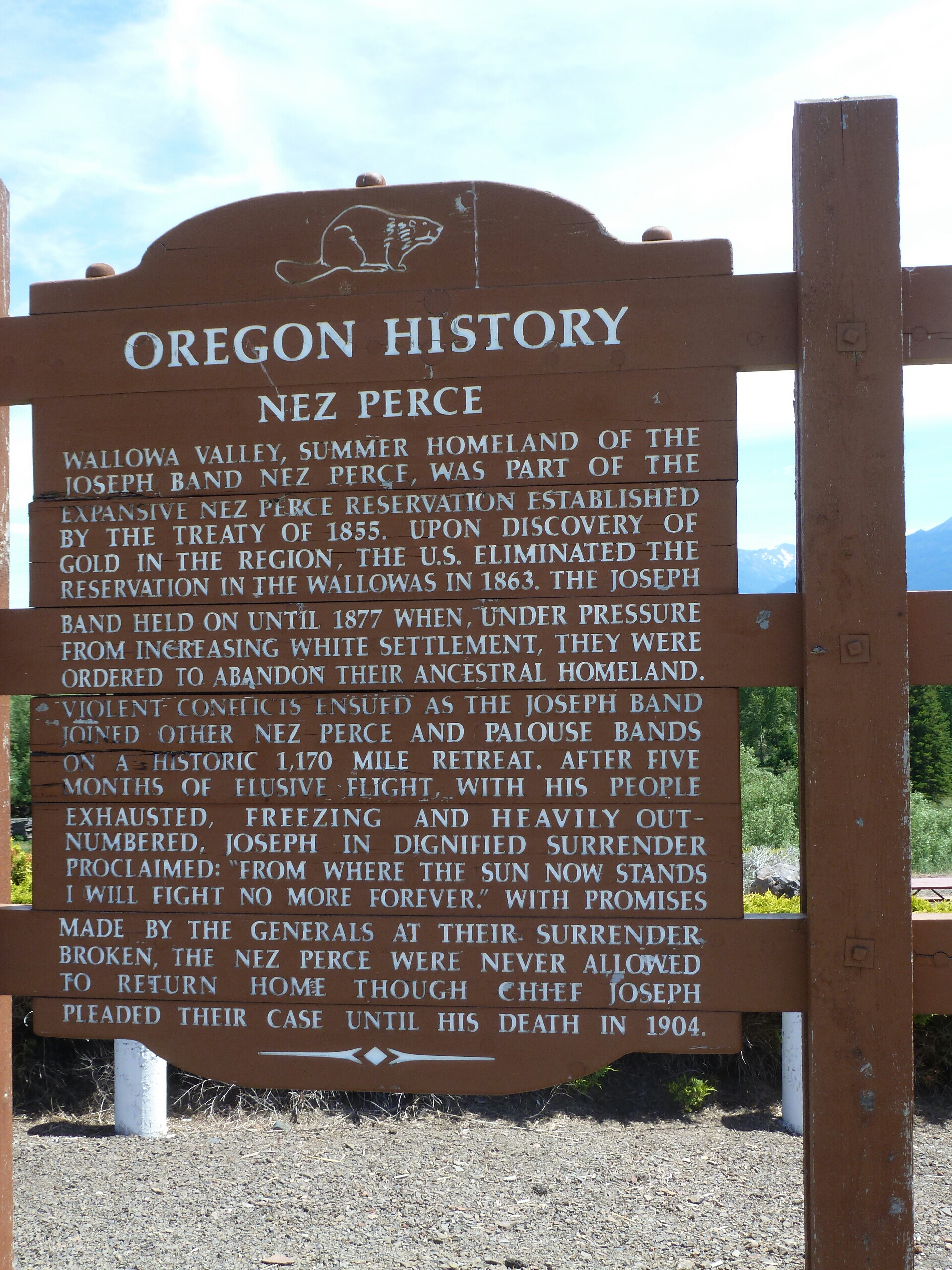 This area is Nez Perce territory and has a long and tragic history which is explained below.