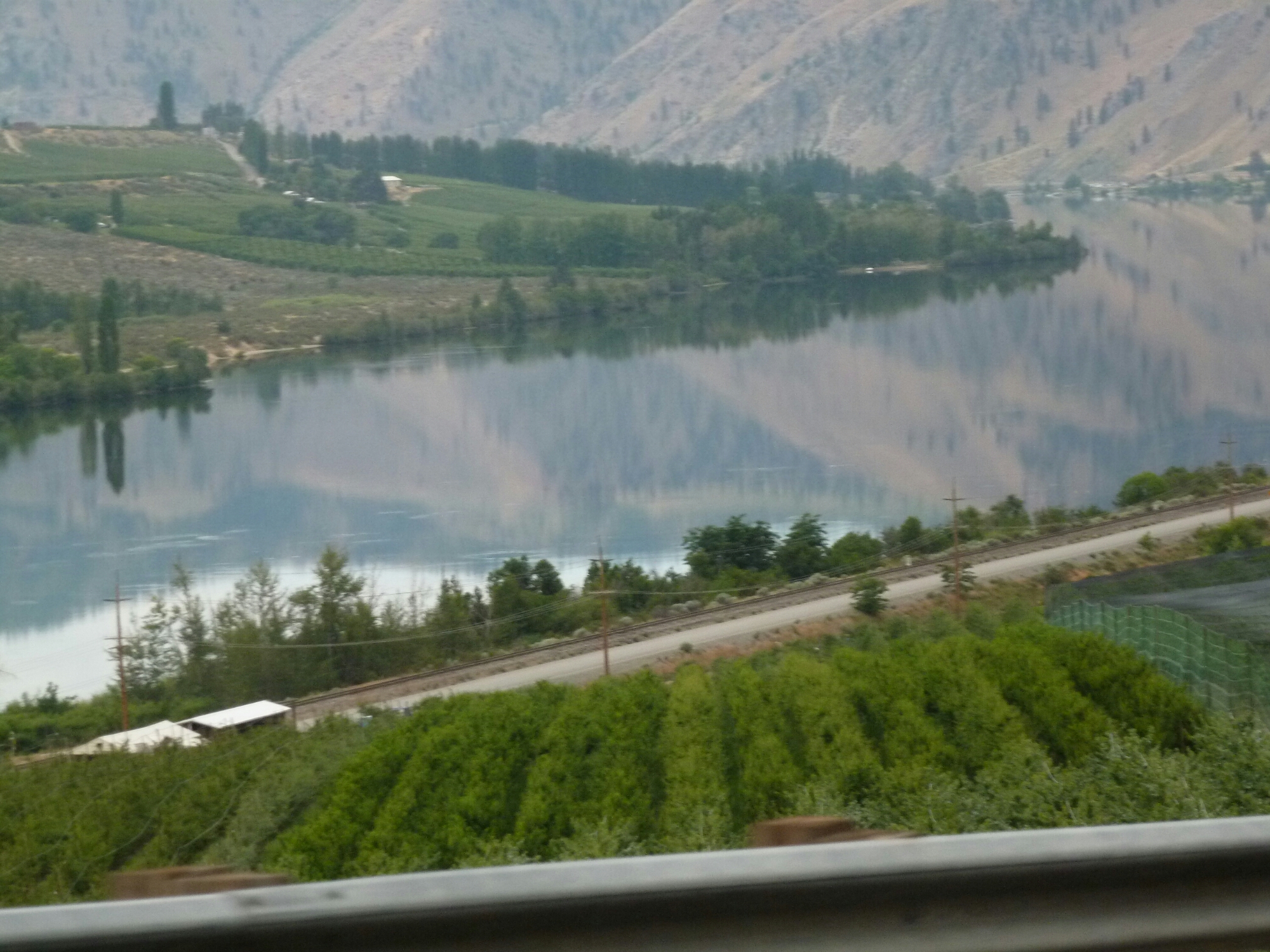 Not necessarily in that order. We left Chelan at our usual early hour and enjoyed the fresh, crisp 70 degrees. The Columbia River met us again about ten miles southwest of Chelan and was our traveling companion for several miles before we headed west.