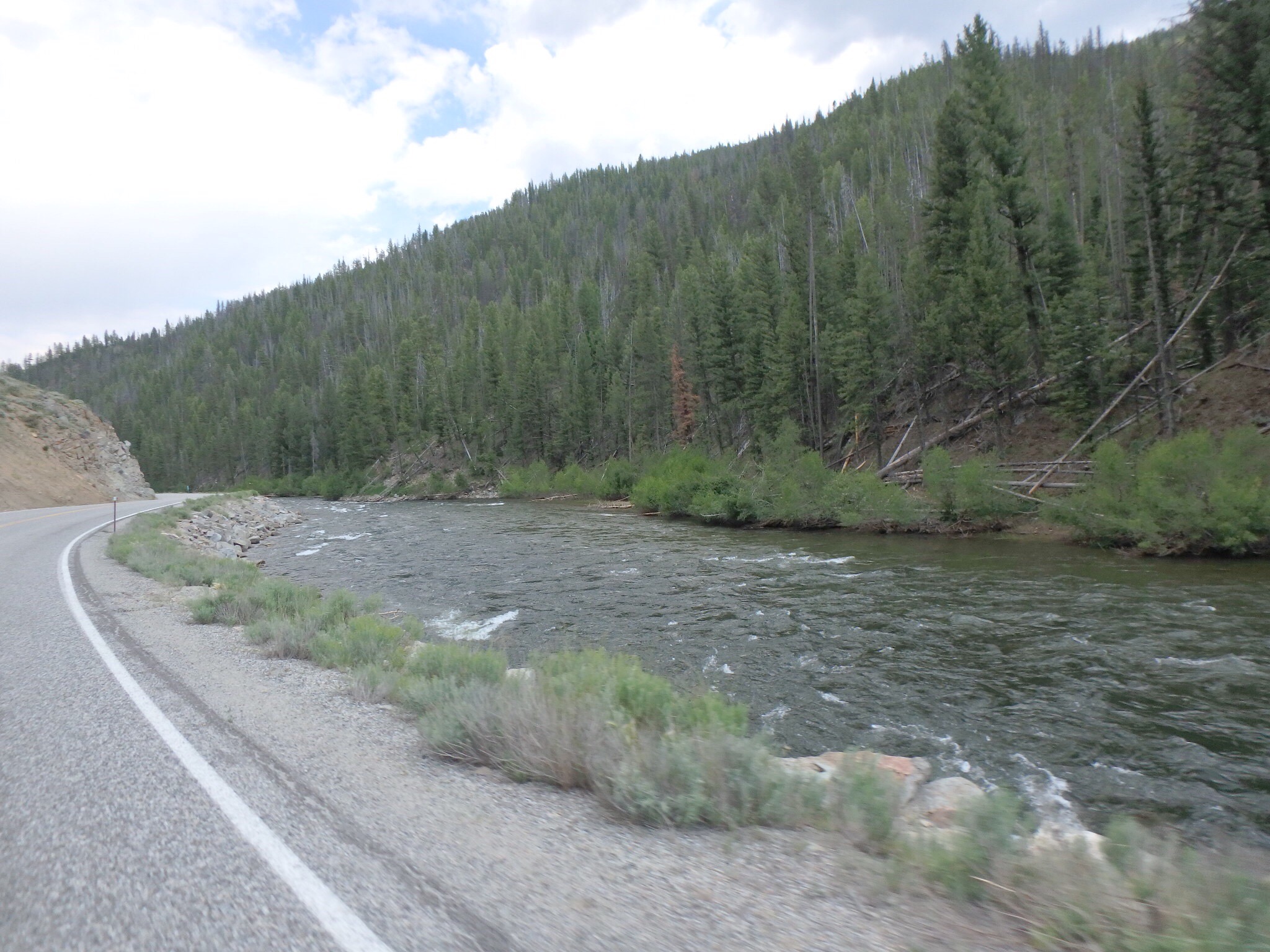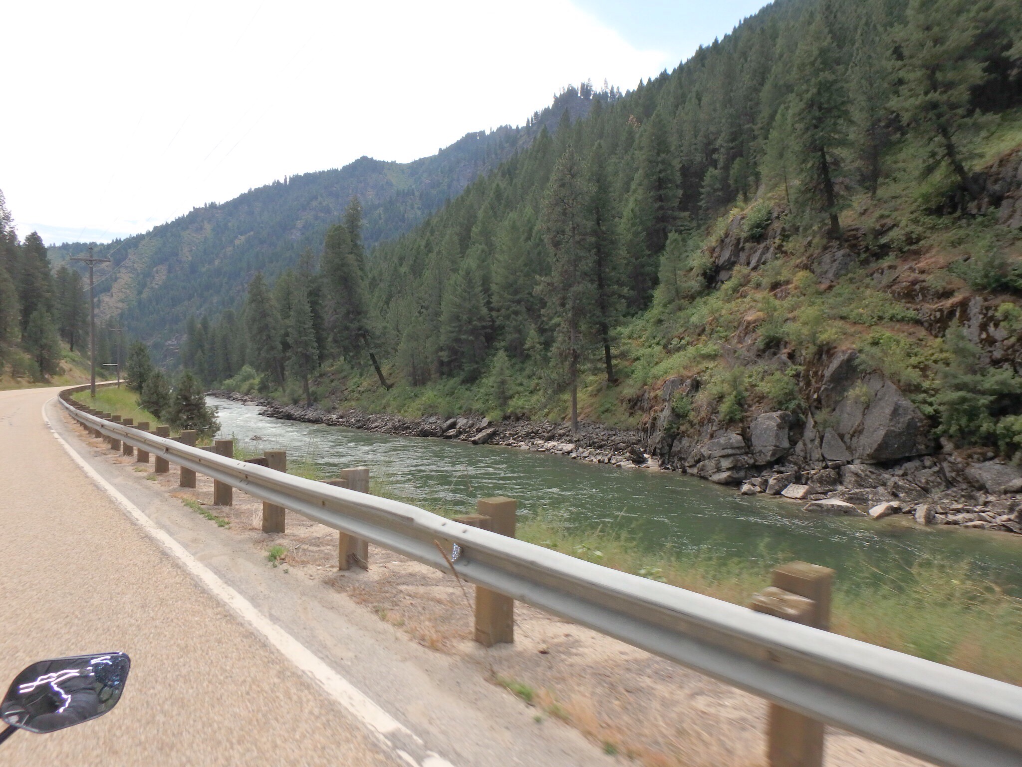 We entered Idaho and continued east on Hwy 52 where we met the Payette river. It was starting to warm up to the low 90s and it was cloudy which made the air muggy.