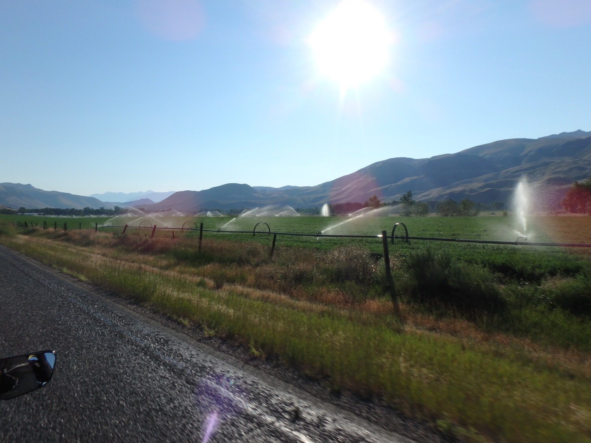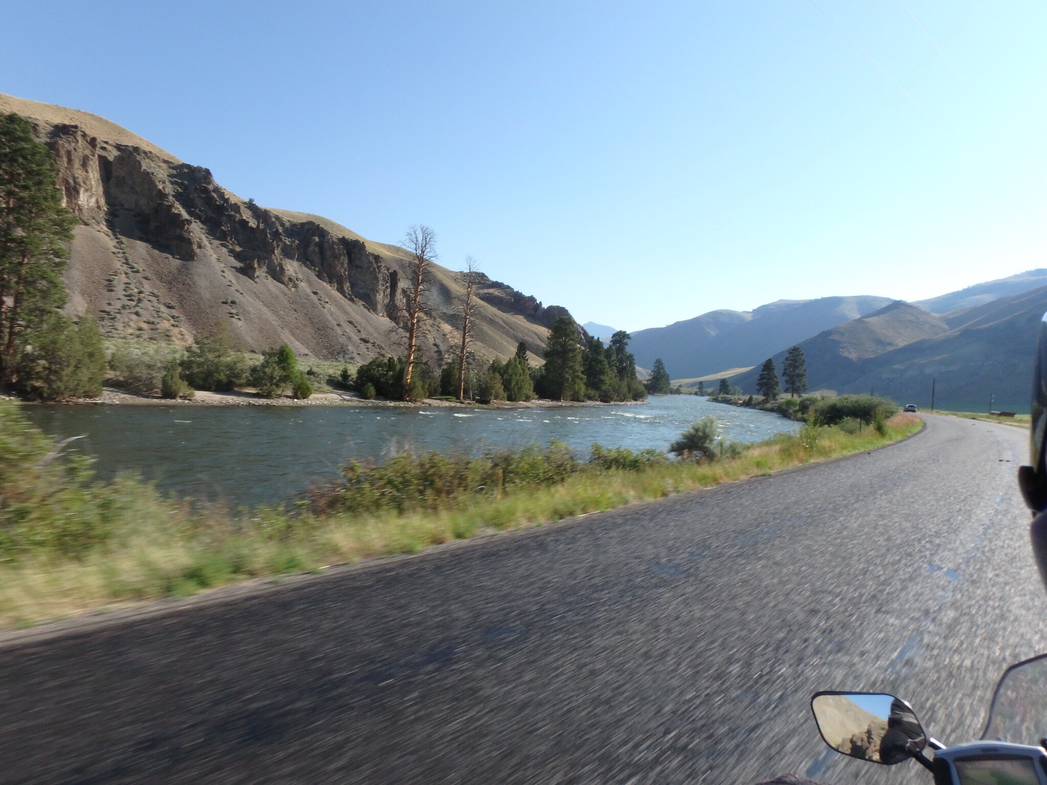 Today we headed northeast along the Salmon River on the Salmon River Scenic Byway. We left at our usual 7:30, only we are in Idaho so it was really 8:30. We downed some really bad, weak coffee from the hotel restaurant and headed out. It was a comfortable morning. We started off through more beautiful farmland.