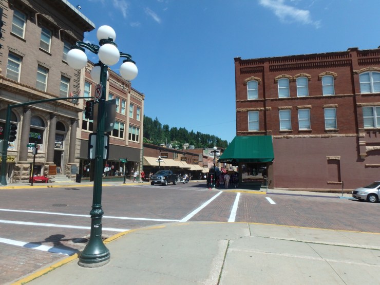 From there we headed southeast into the Black Hills National Forest. Deadwood was our lunch stop. This is a cute little town with a rich history. In fact, it is where Wild Bill Hickock was murdered and the home of Calamity Jane. We enjoyed a walk through the town and visitor center and had lunch outside at the site of an old gas station – now a restaurant.