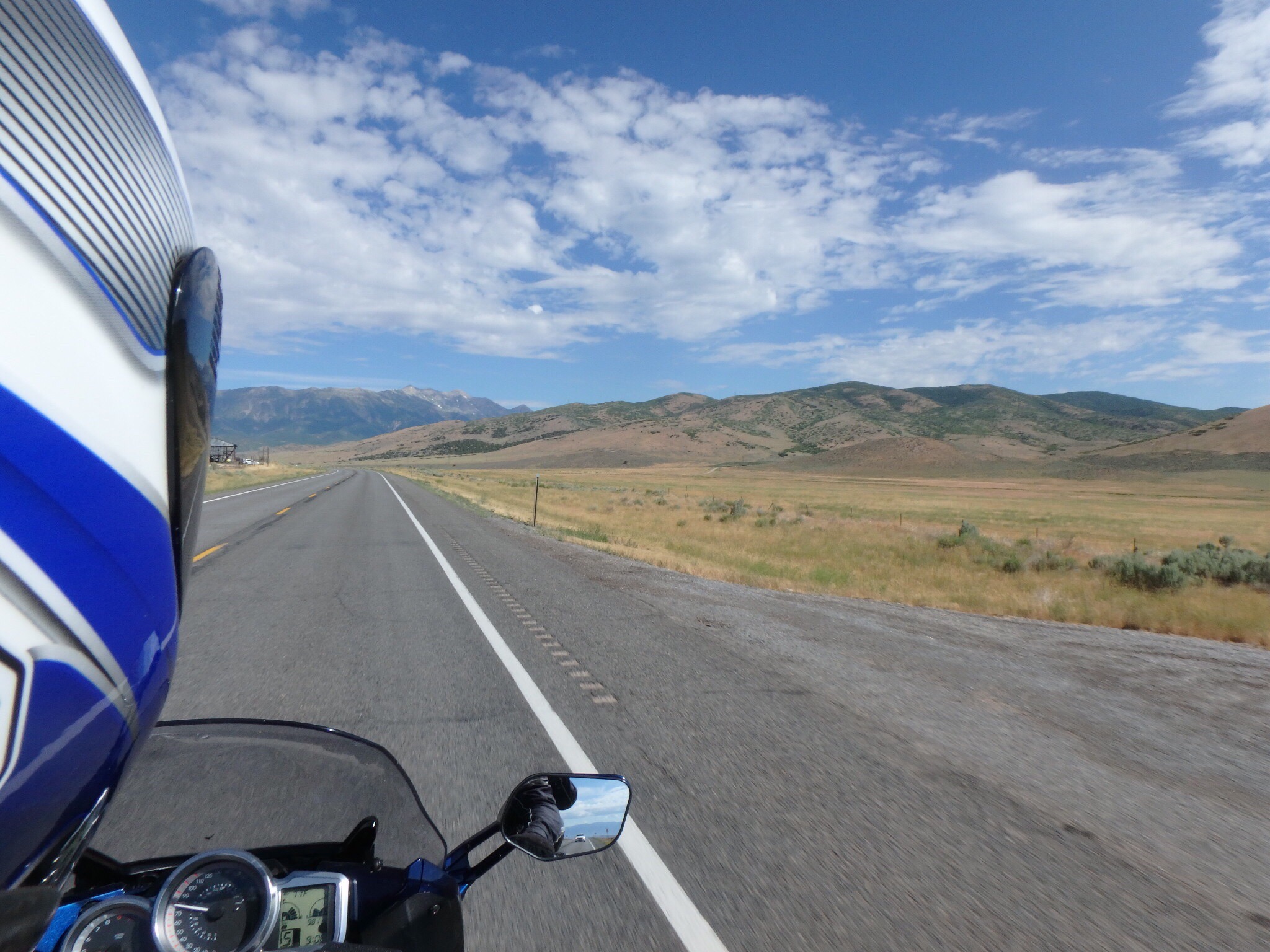 Soon this beautiful ride was over and we descended into the Great Basin which is surrounded by high desert mountains and laced with salt flats. And it’s windy.