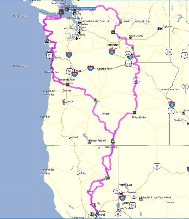 We’re getting ready for the 2018 ride. This year we’re sticking to the left coast of our beautiful nation and popping into British Columbia for a few days on Vancouver Island. Our route will include three ferry rides – Anacortes to Friday Harbor, Friday Harbor to Sidney and Victoria to Port Angeles. We’ll take ten days to make the roundtrip for an estimated 2,300 +/- miles.