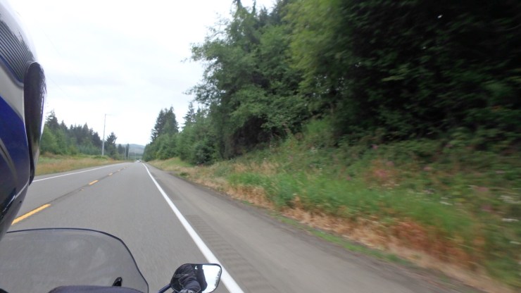 He flew away before we could hit snooze. Awake, we got ready quickly and started our ride to Oregon. The morning was cool and overcast with some drizzle. We were bundled in our liners and warm gloves so we enjoyed the cool air and were quite comfortable.