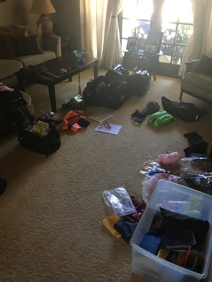 This allowed Tom some extra time in July to go on a motorcycle trip to Montana with a few friends. As a result, our living room has been a motorcycle trip staging area for over a month now.