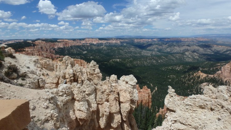 It was our first time visiting Bryce Canyon National Park. We rode the entire 18 mile length of the park to Rainbow Point which provides a look north up the Canyon. We can’t describe the awe-inspiring views. We have seen photos but until you witness these formations firsthand, you don’t appreciate the beauty. Here are our pictures that attempt to capture this stunning scenery.