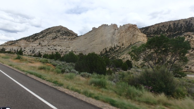 We left Bryce reluctantly because the sky was looking ominous. We entered Grand Staircase Escalante National Monument which a series of plateaus of sedimentary rocks.