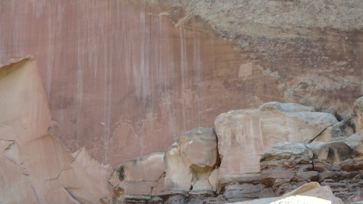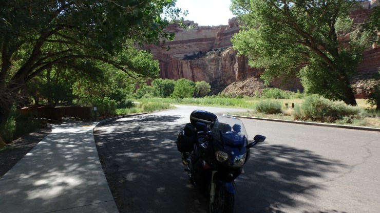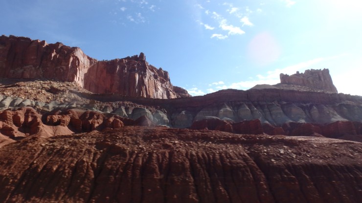 And continued on through the park which encompasses a 100-mile Waterpocket Fold (Google it). This is a buckling of the earth’s surface resulting in in potholes that fill with rainwater.