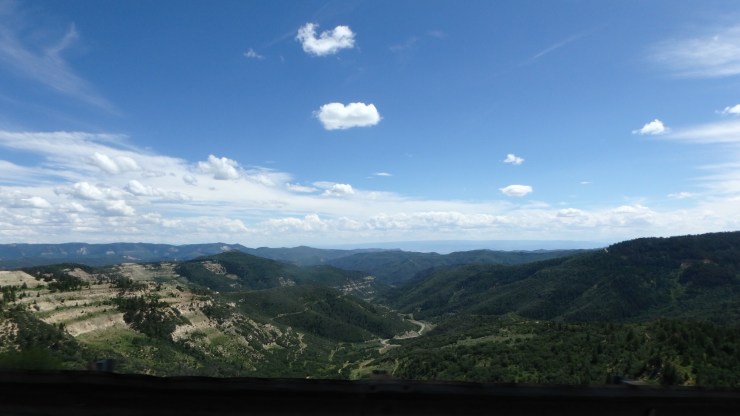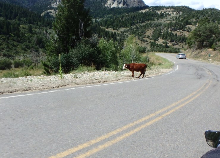 And then in almost a blink of an eye, we were in an alpine forest. The Bookcliff mountain range rises to 9,600 feet above sea level. This was a fun road with gentle curves. This is also cattle country with open range herds. We had to slow or stop multiple times for our bovine mommies and babies. No bulls.