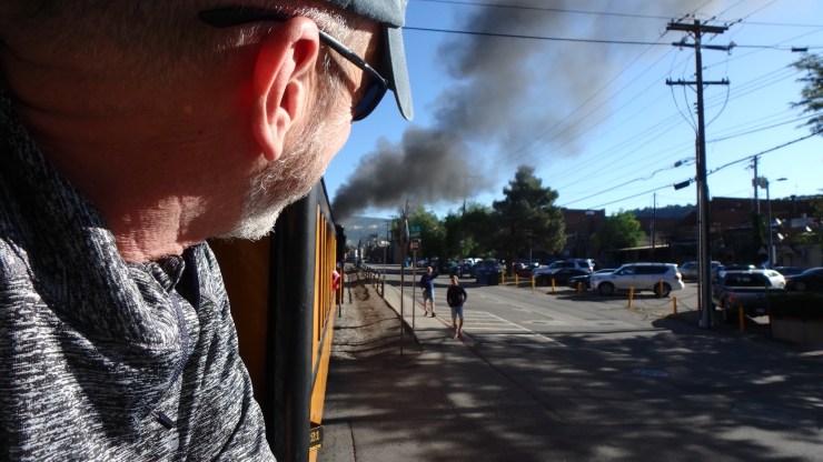 After many eye washes, Tom finally dislodged the soot from his eye and enjoyed the trip back to Durango with his head firmly ensconced inside the gondola.