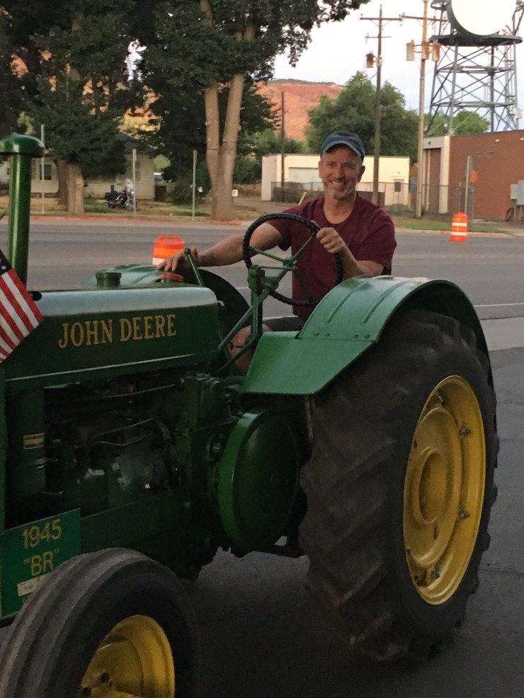 Forty miles later, we were in Kanab, Utah. The town is known as Utah’s Little Hollywood because of the many movies filmed here, mostly Westerns. The Western Legends festival was going on so we took a walk to investigate. Tom got super excited about a John Deere tractor on display and asked the owner many questions.