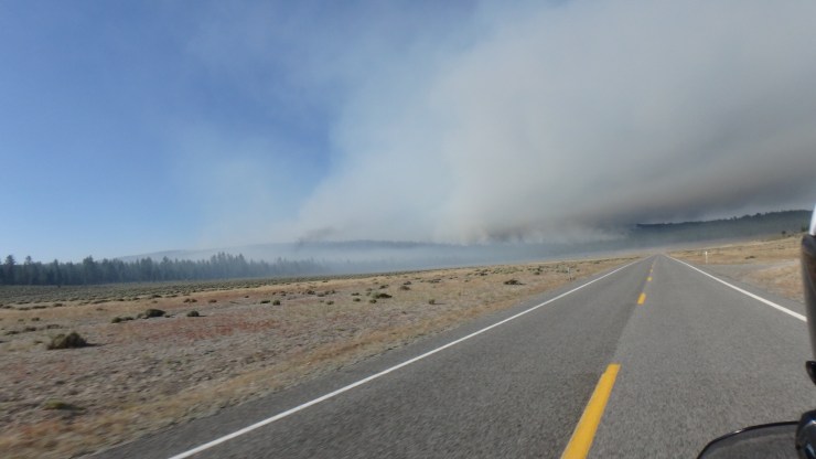 As we rose into the eastern Sierras, we started to see smoke and we were headed right toward it.