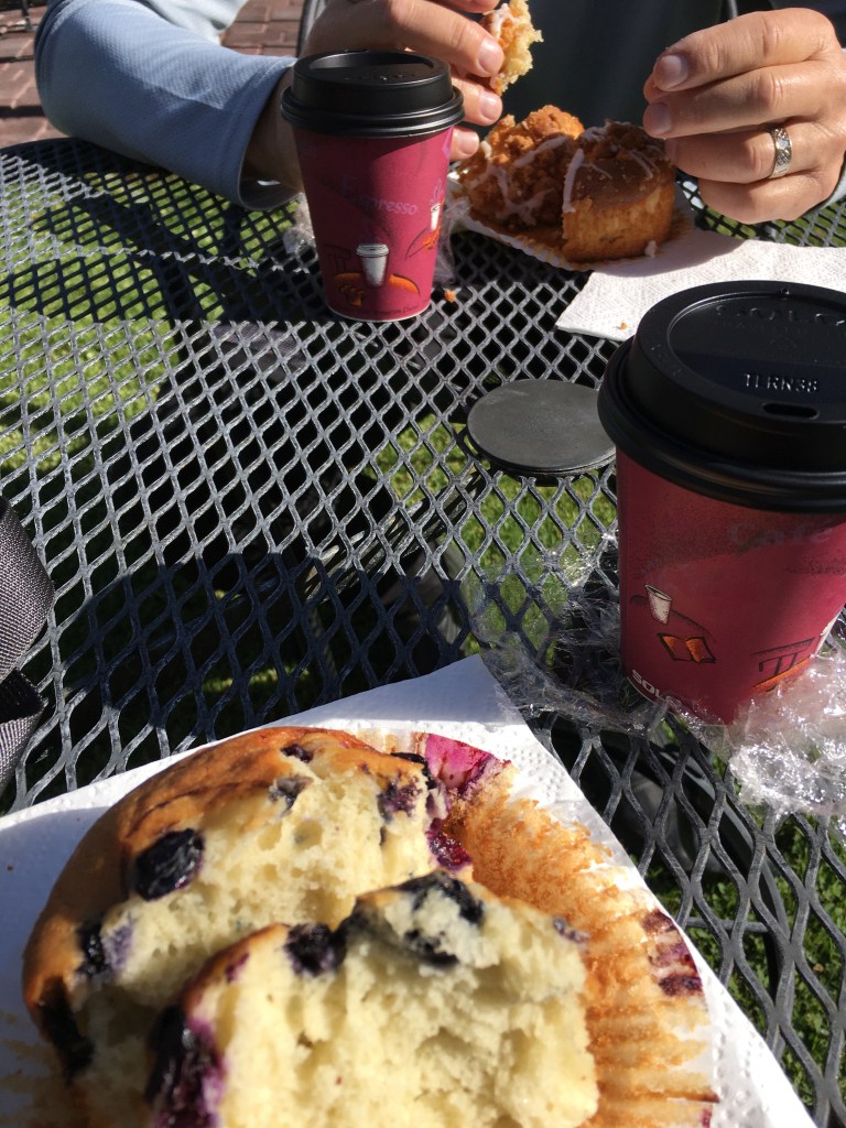 We started the day shortly after 7:00am. Knowing it would be hot when we returned to the Sacramento valley, we decided to get on the road early. We got dressed in our riding gear and walked down to the coffee shop. We downed a double espresso each and shared some muffins on the lawn at the motel.