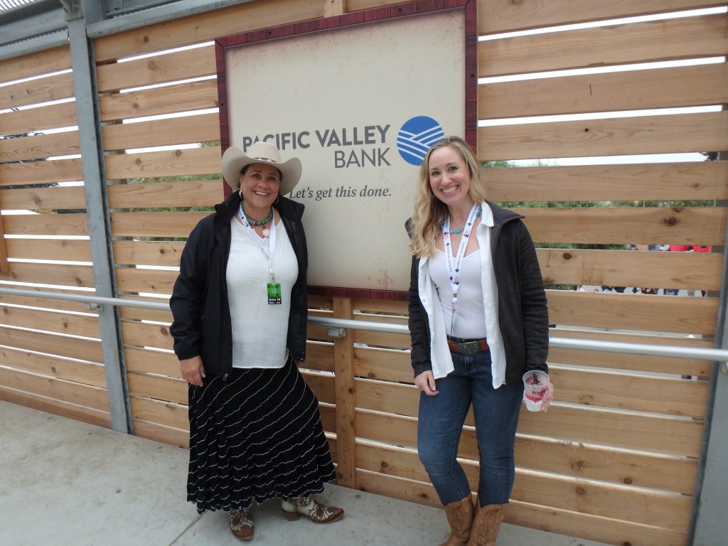 We got back to the kids’ house around four and got ready for the evening’s entertainment – the California Rodeo Salinas. Charlotte’s employer, Pacific Valley Bank, was a sponsor.