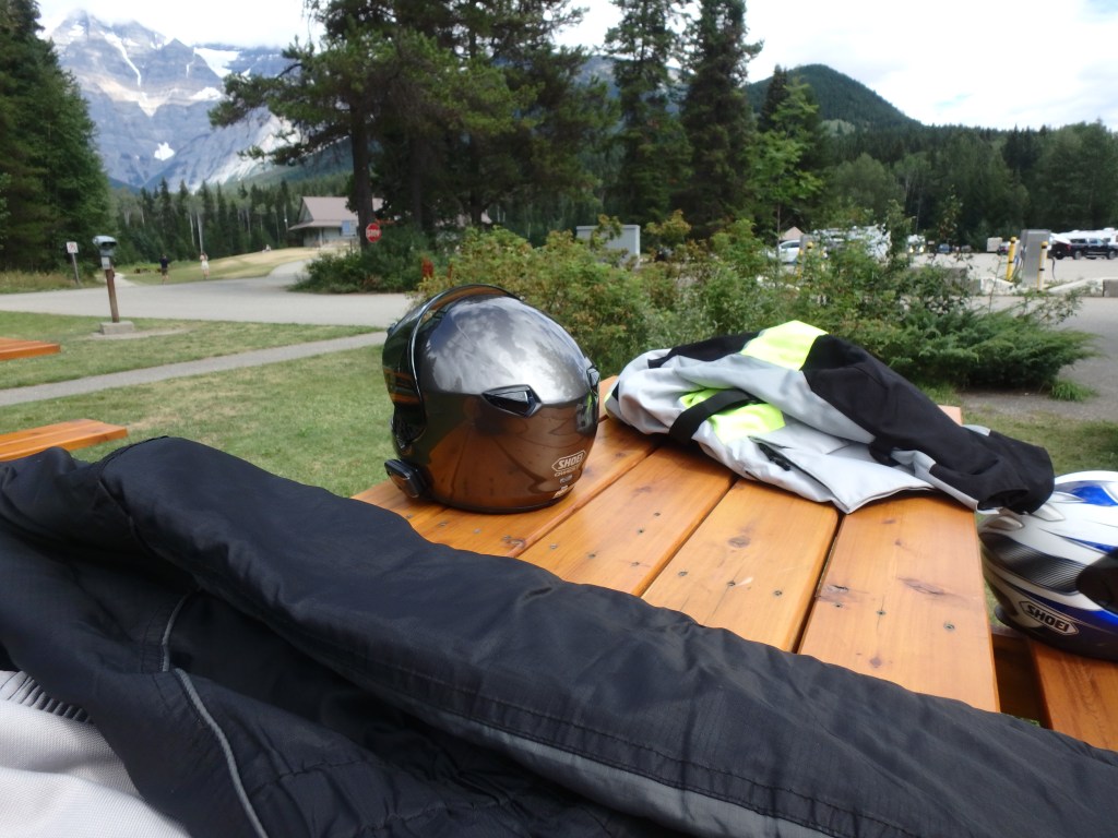 We stopped at Mount Robson for a coffee break. While Cathy was ordering the espressos, Tom went in search of ice cream. We sat outside in pleasant lawn area and listened to conversations in many different languages at surrounding tables while viewing the majestic mountain. Tom strategically chose rum raisin ice cream so he wouldn’t have to share with Cathy. Ewe.