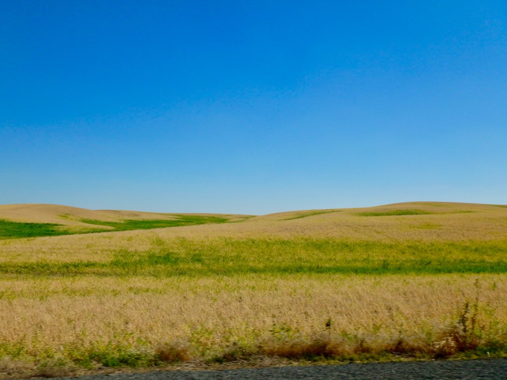Once in the US, we jumped on the Palouse Scenic Byway in Washington State. This is a beautiful road that winds through a series of small lakes and rolling grain fields of multiple shades of yellow. There are many seed and grain companies in this region.