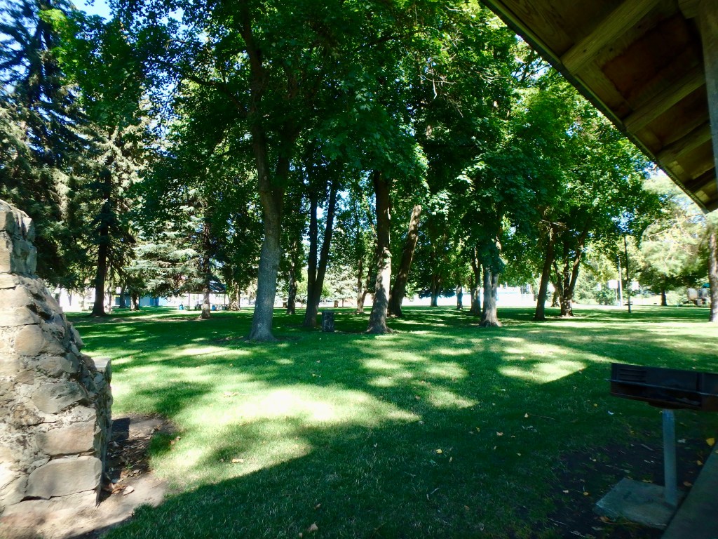 It started to get uncomfortably hot winding our way through the fields so we stopped for a Gatorade and a stretch and continued on. The heat just got worse so we stopped in Palouse at their community park which was full of trees and shade.