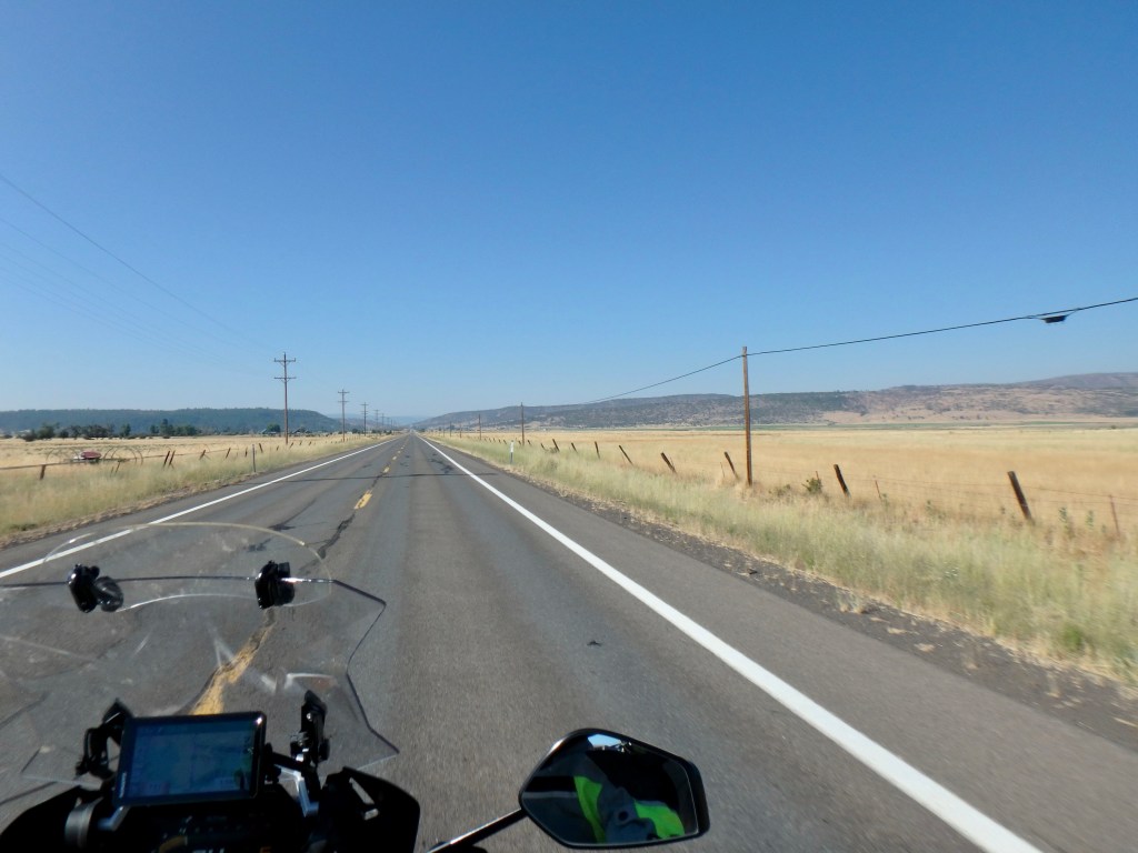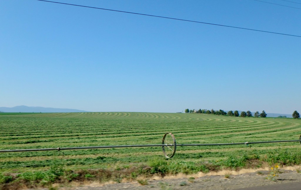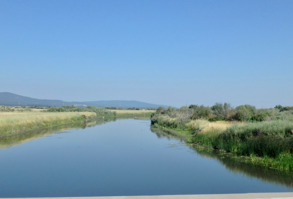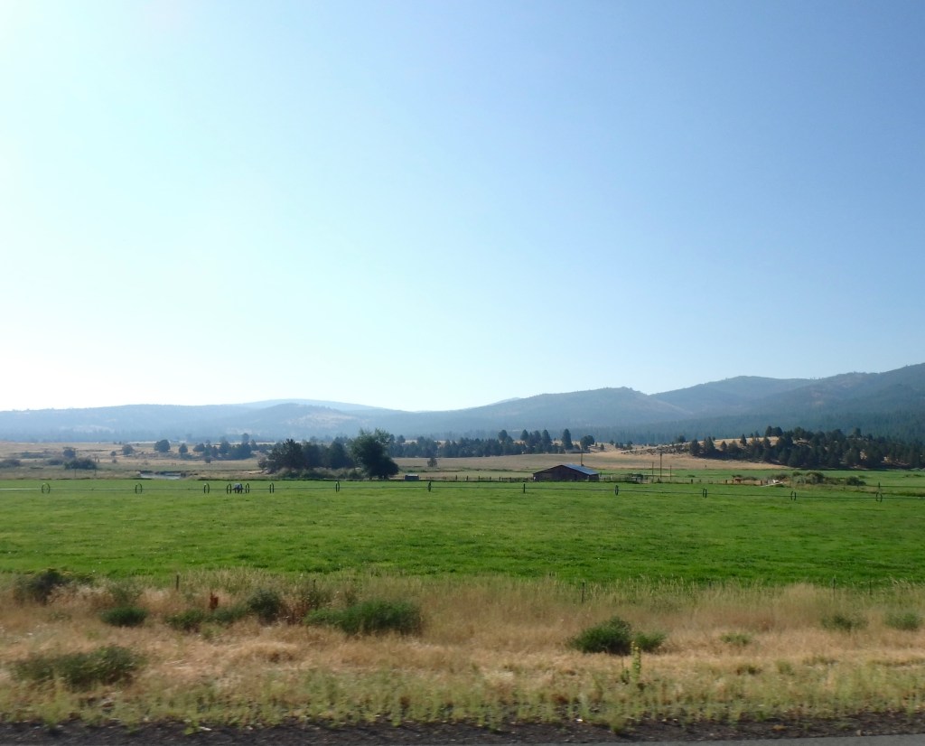 The sky was filled with smoke and the area full of firefighters. In fact our hotel was occupied mostly by firefighters. We left Alturas through their outlying farmlands.