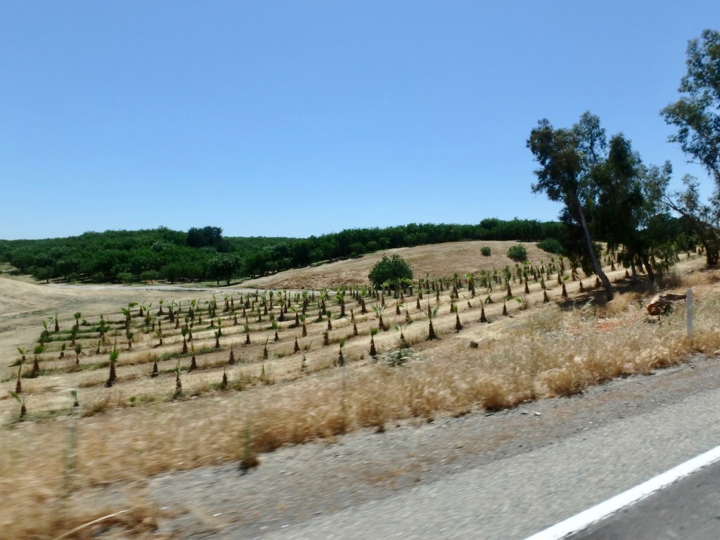 We soon left the foothills behind and entered the valley filled with orchards and vineyards. As Californians, we’re used to orchards, vineyards and multiple crops… but this was a first. A palm tree nursery.!