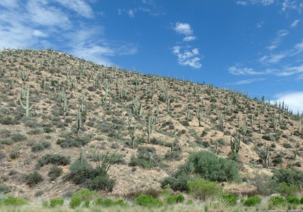 Depending upon the elevation, the saguaro dotting the hillsides came and went. They are quintessentially Arizona.