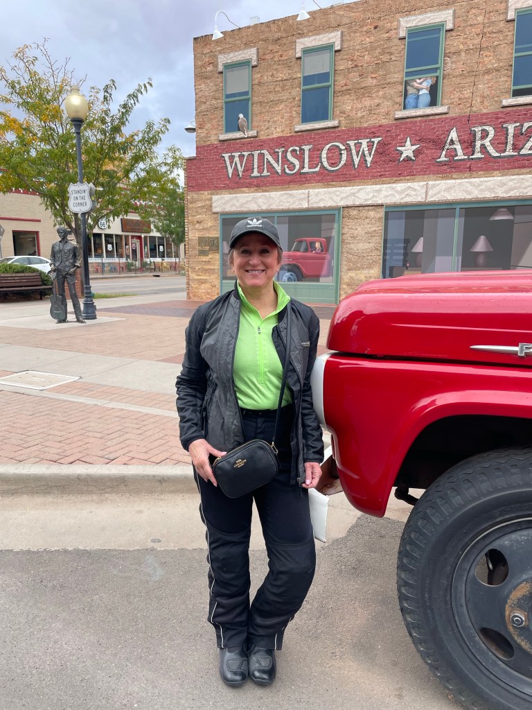 And of course we had to get a picture of Cathy leaning on the flatbed Ford on this famous corner on Route 66.