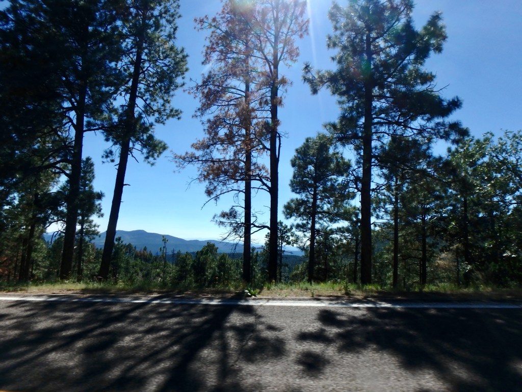 We stopped in Morenci because Cathy was nodding off and need a caffeine boost. We looked for a coffee shop but could only find Starbucks. We committed the sin of parking a GS BMW in front of a Starbucks (Google it). Feeling a bit refreshed after a double shot and half a sandwich, we motored on.