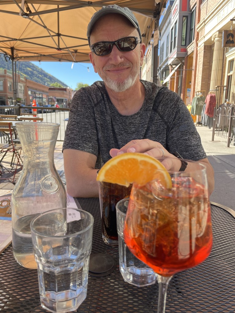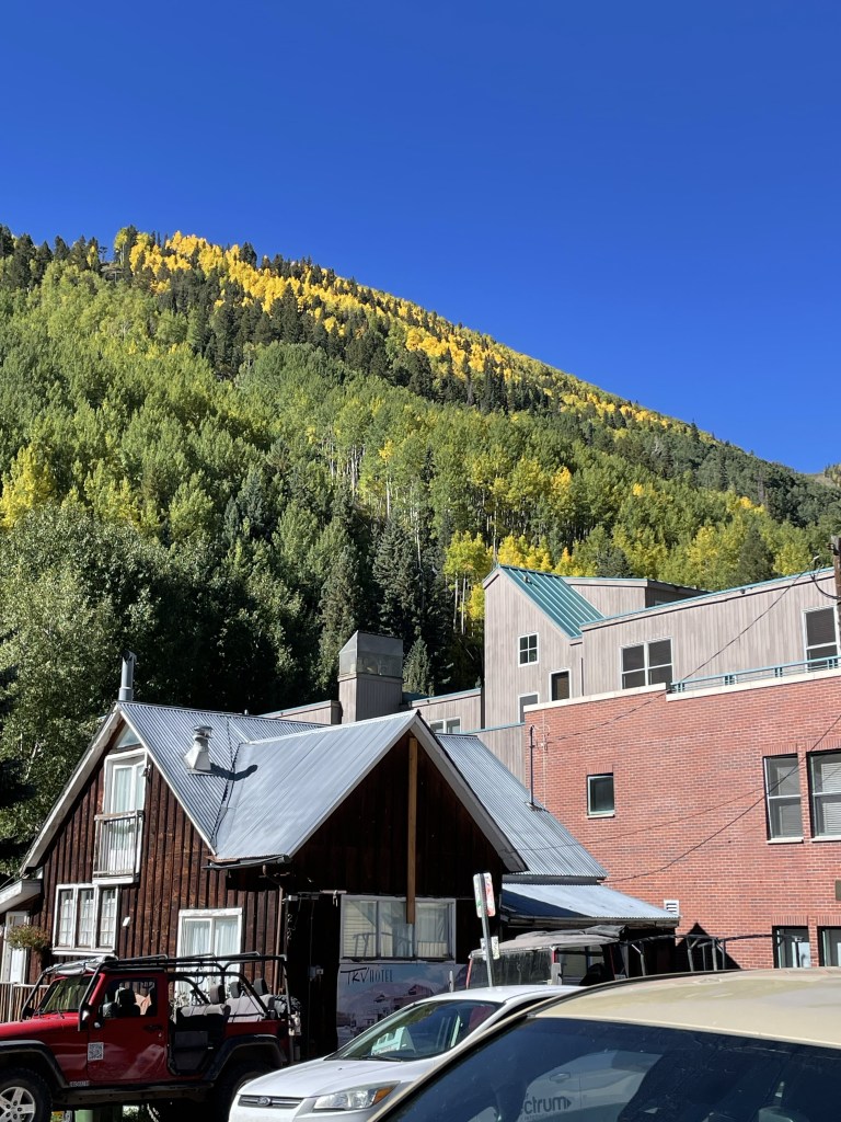We then made our way to Main Street where we enjoyed a beverage, great people-watching and adorable dog watching. This place is very dog-friendly. The woman at the restaurant told us that we had successively threaded the needle for great weather and good color. Next week’s color will be “eye popping” she said. We’re just happy with the fantastic weather and the color we’ve been privileged to see.