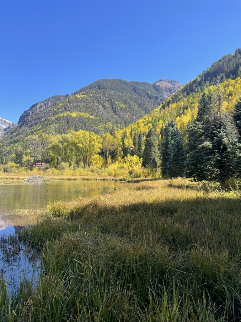 When we returned to Telluride and took a walk along the San Miguel River and saw a beaver pond, a trout pond and more beautiful scenery.