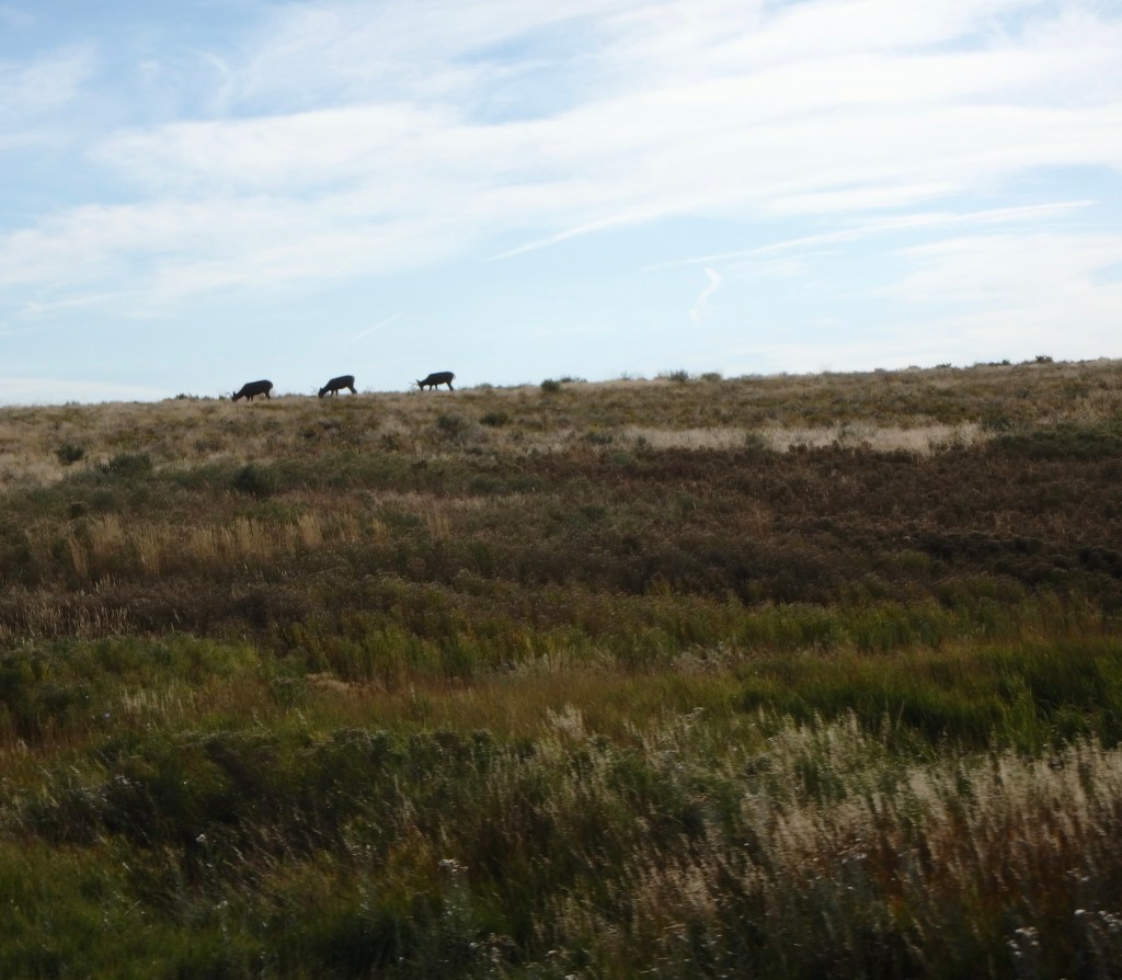 We saw a herd of elk on the edge of a meadow. If you look really close, you’ll see brown spots on the right edge of the meadow…those are elk.
