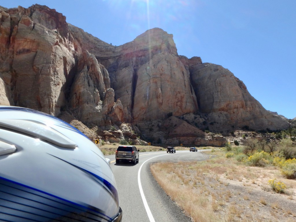 Because there were few stops, we arrived too early at our hotel so we went into the town of Torrey for gas and shared a small lunch. We still had time so Cathy disappeared for a few minutes and returned with Klondike Bars. A delicious way to kill some time.