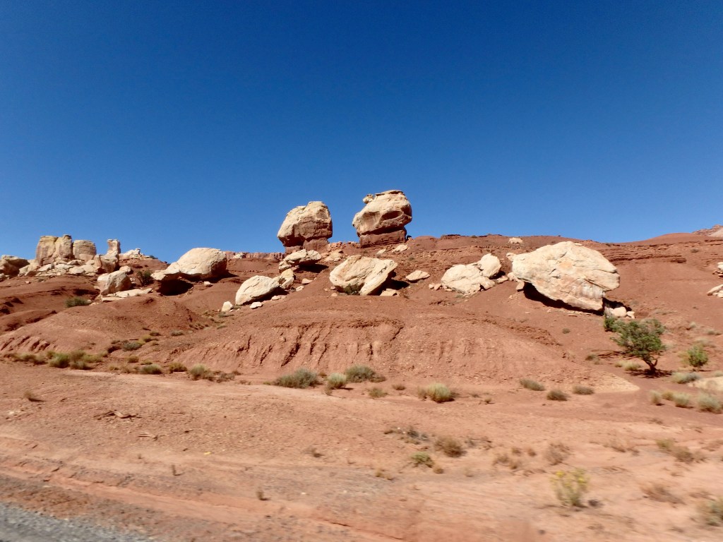 We went through Cathedral Valley, Big Gypsum Basin and Cheese Box Canyon and crossed the Colorado and the Dirty Devil Rivers.