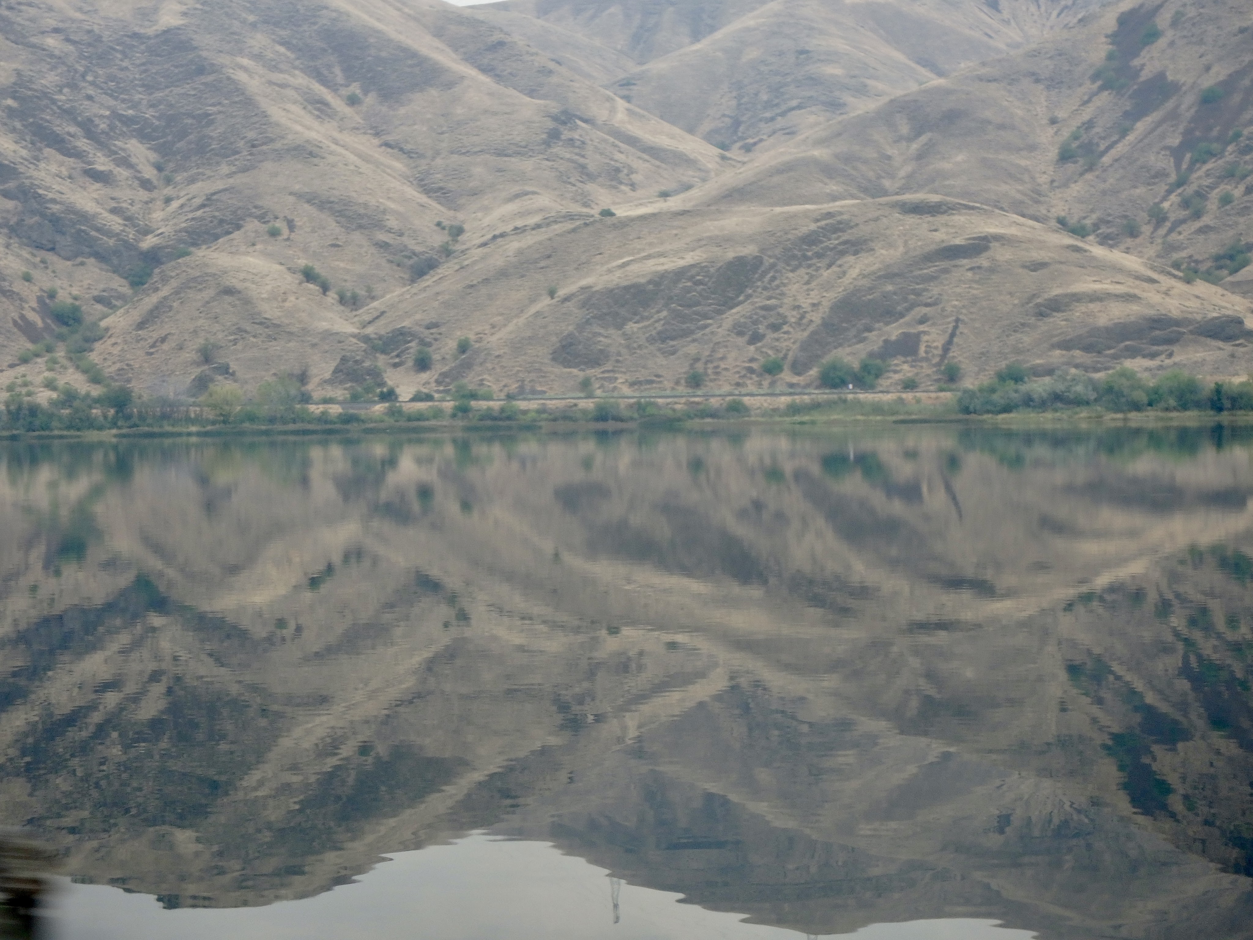 You took a super picture of the lake with the hills behind it. It was the one right after you cross the snake river.