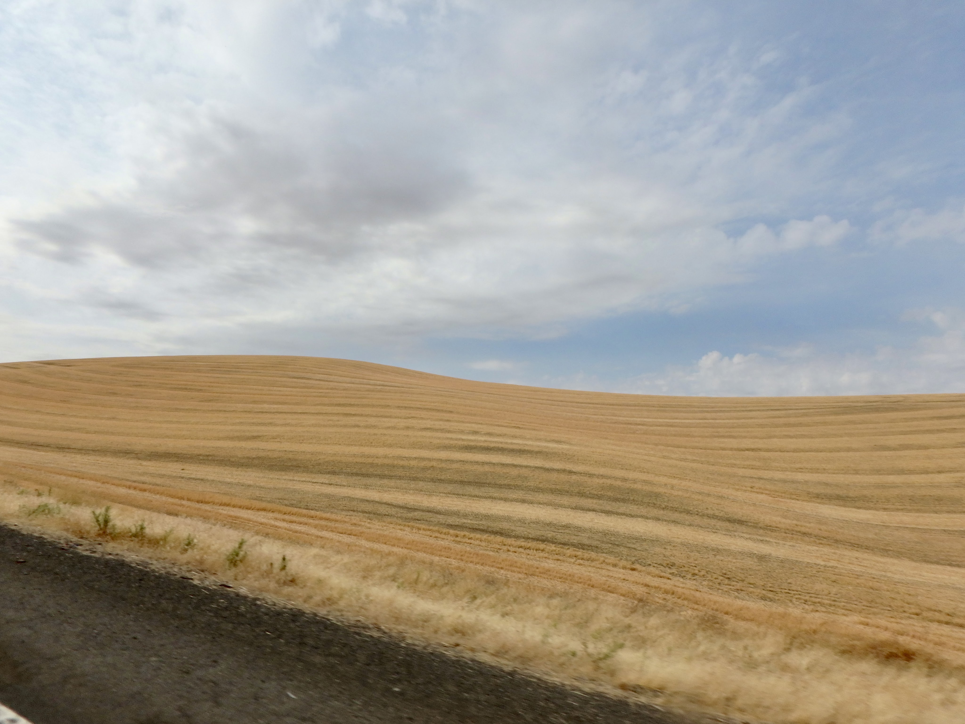 We rose into high desert where there were fields of grain being harvested leaving artistic patterns left by the harvesters.