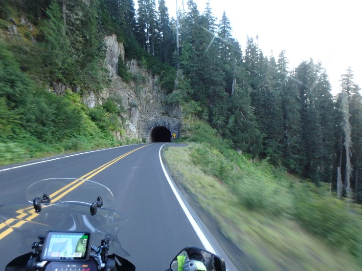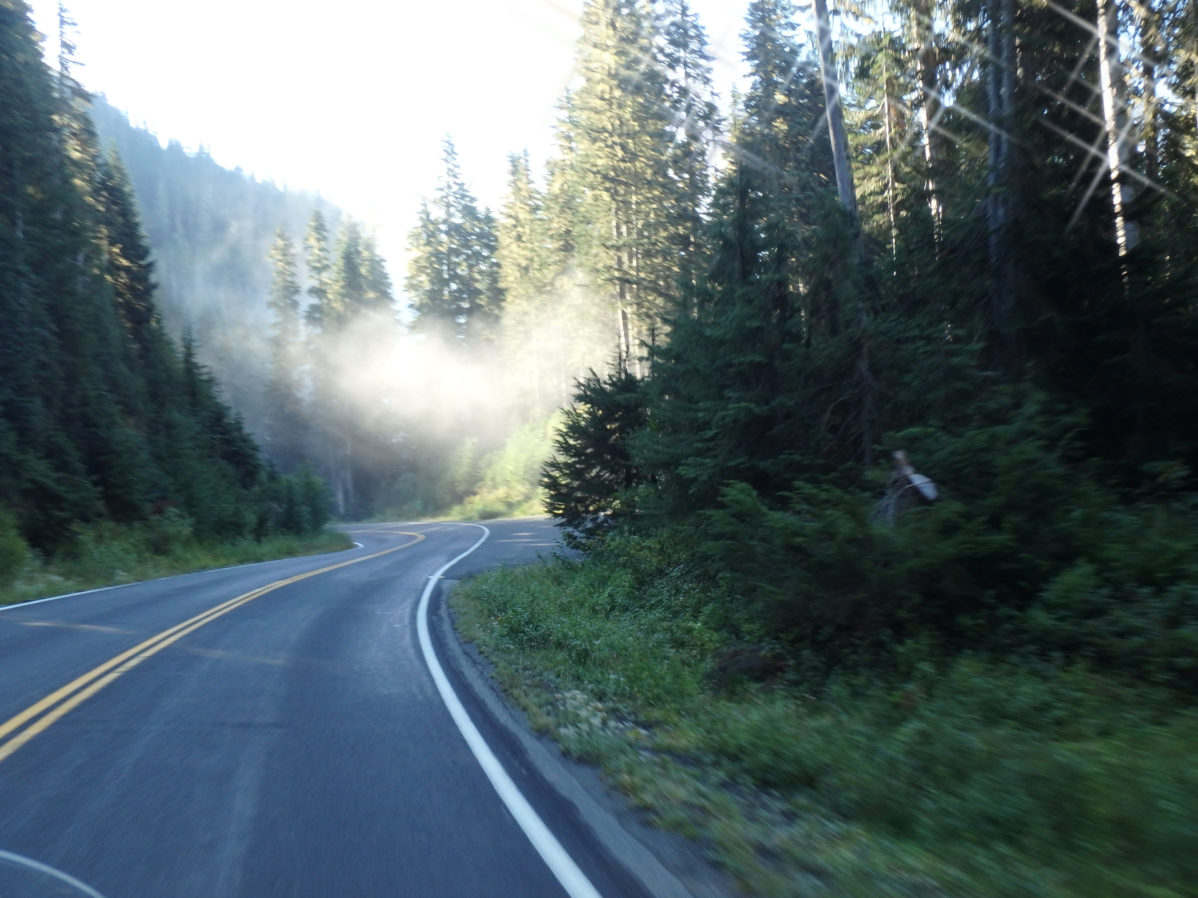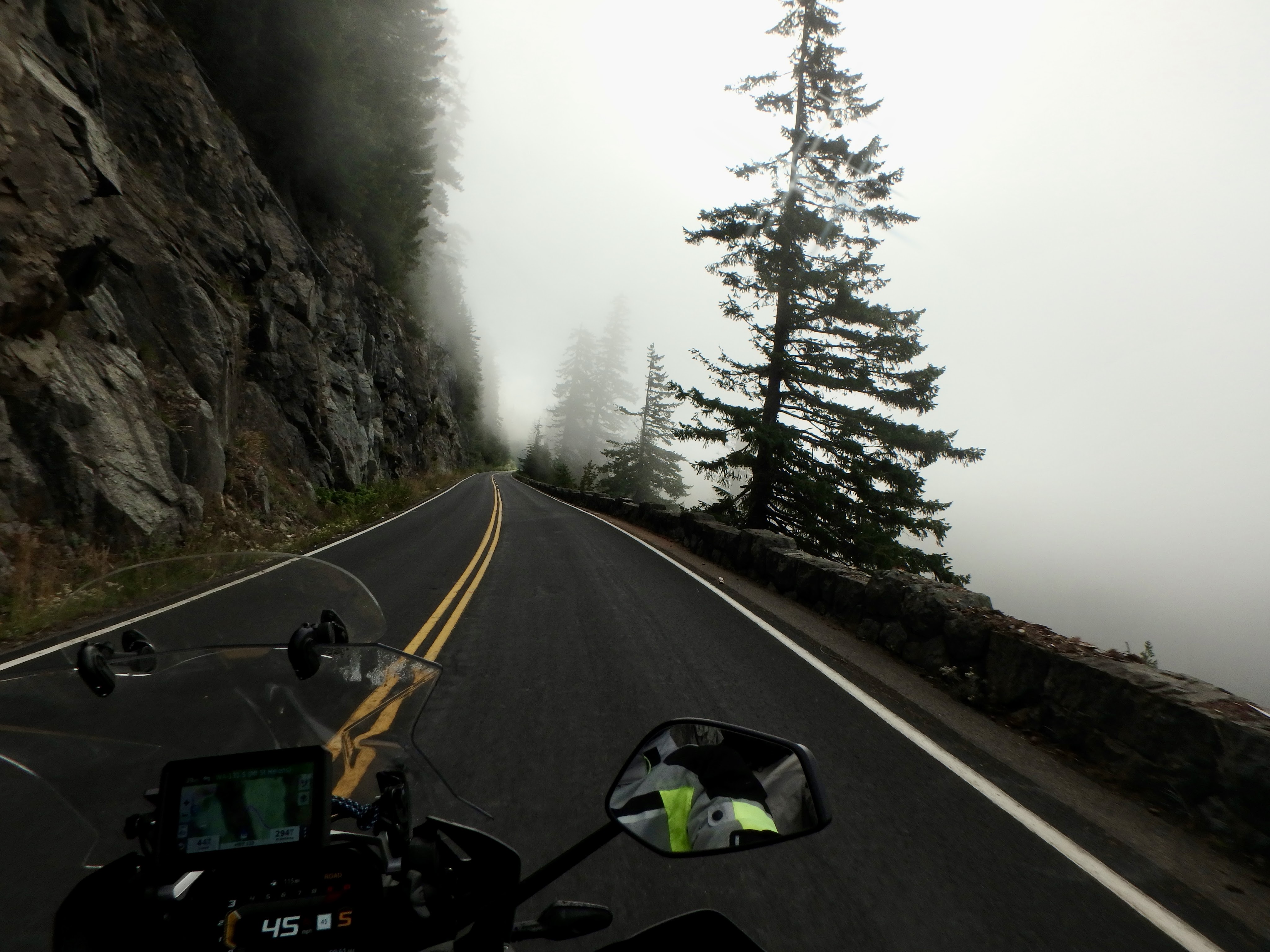 We headed out at 8:30 because today was going to be a seven hour ride, according to Zumo. We soon rose up into the clouds once again but we caught a glimpse of Mount Rainier! No picture however, because Cathy fat-fingered something on the camera and we missed the shot. The ride was beautiful, though.