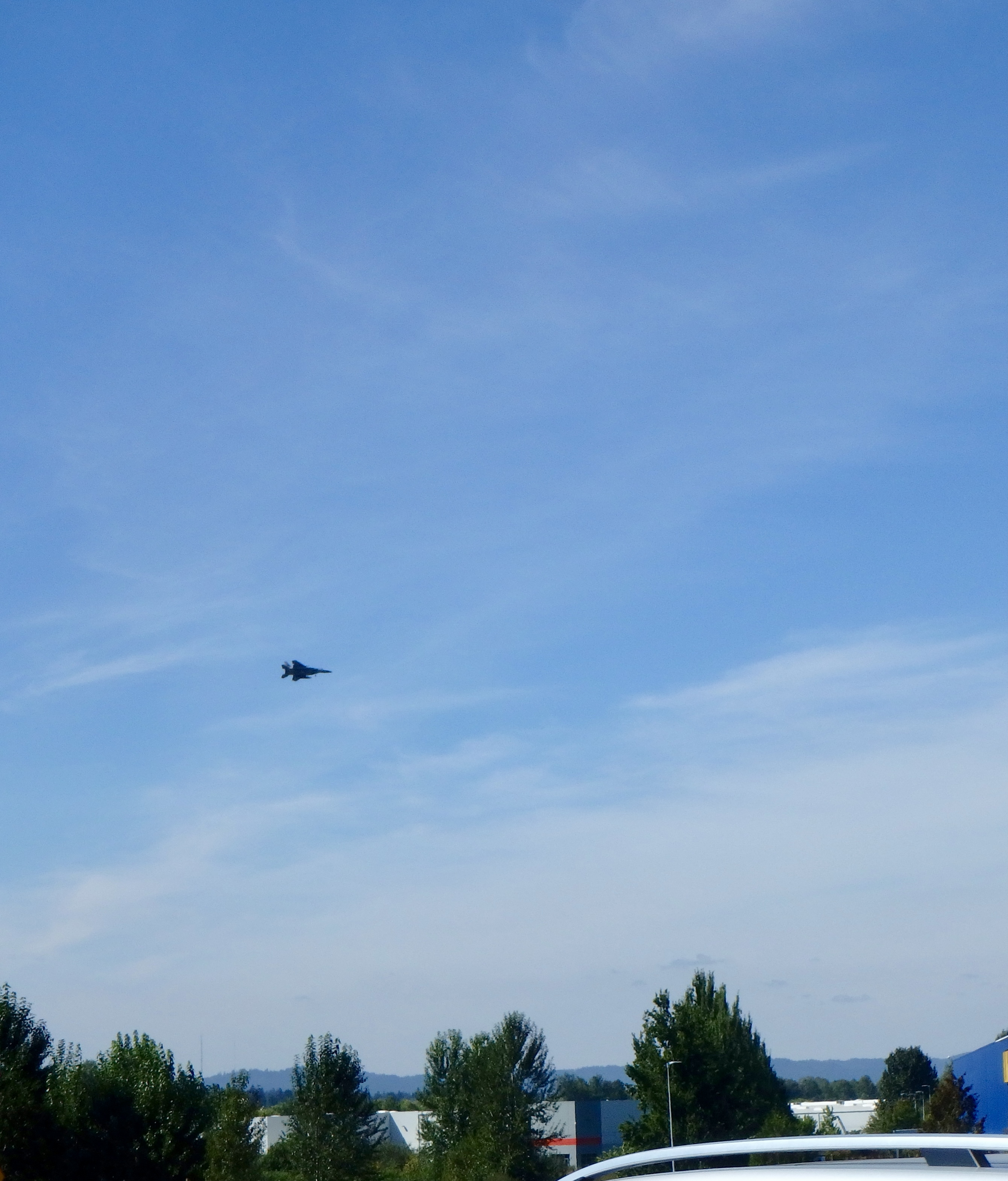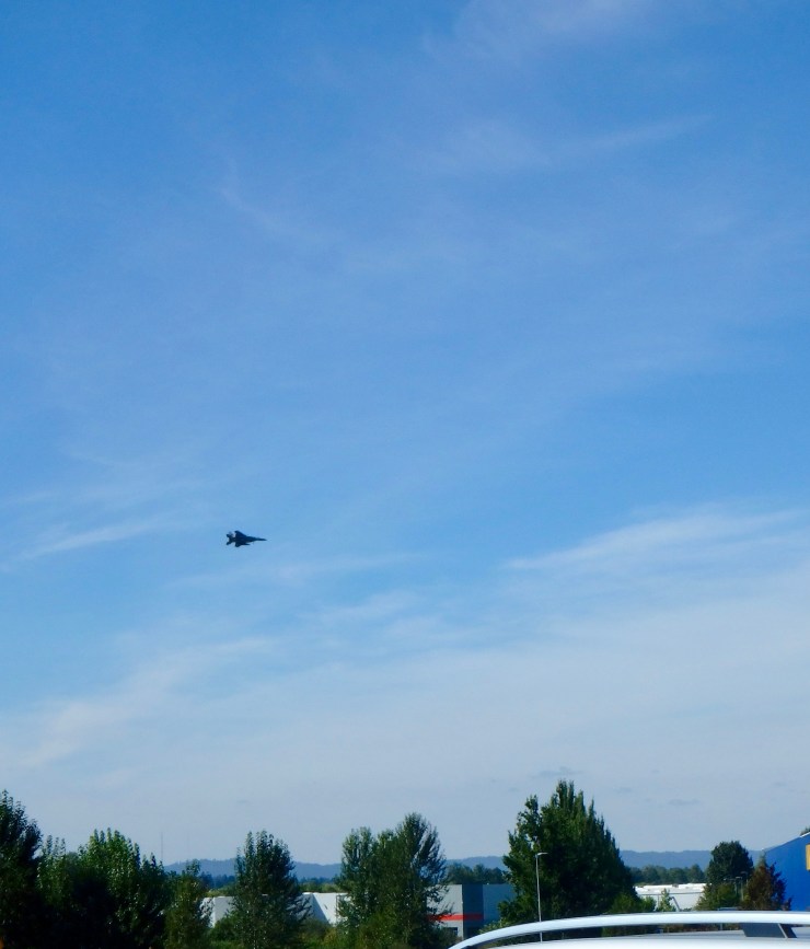 We decided to get on I-5 and then asked the Zumo to take us on some parallel roads that kept us out of the city centers of Vancouver and Portland. For the most part, it worked. We did get caught in a few traffic jams but we saw a fighter jet coming in for a landing. Bonus!