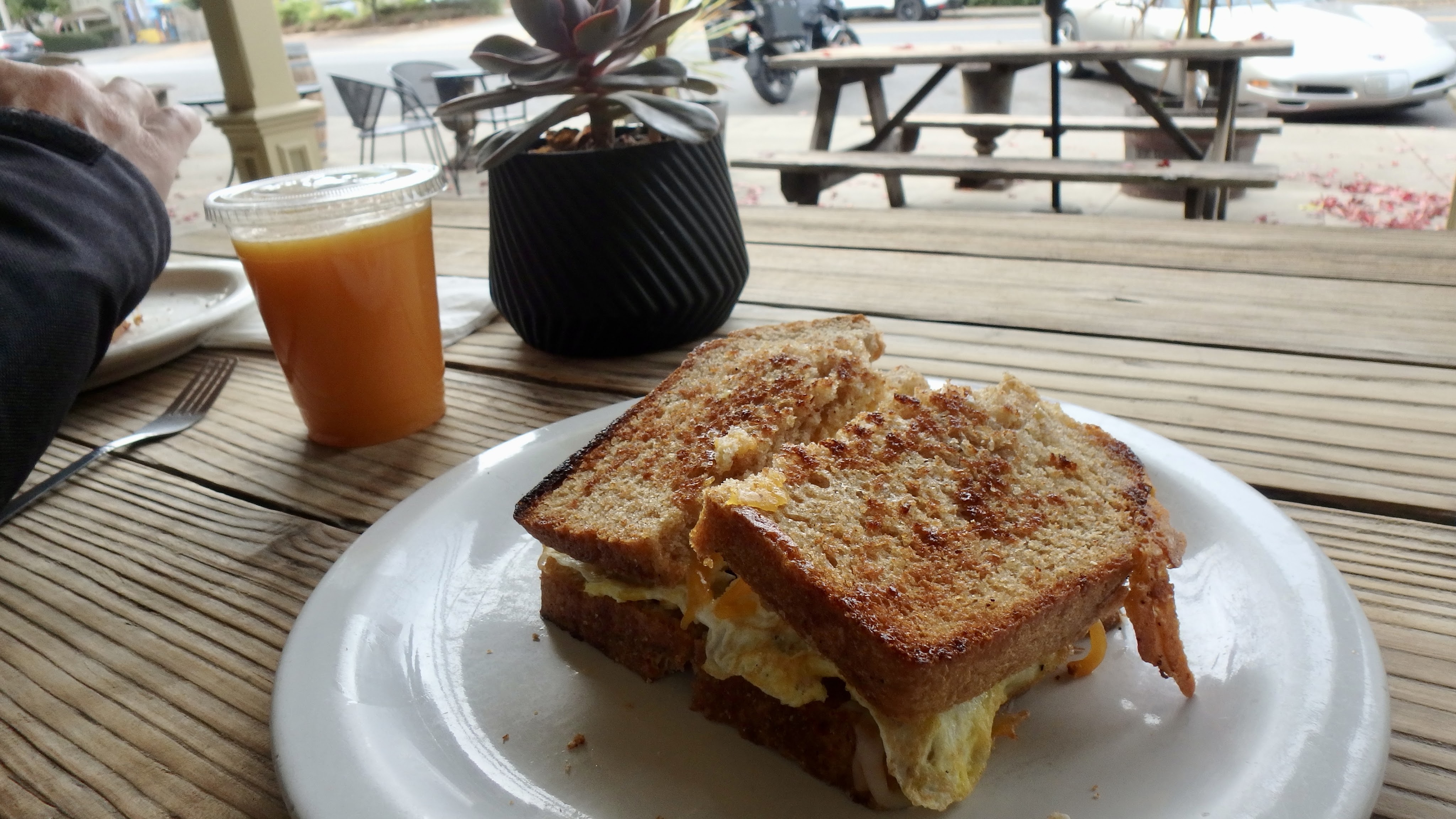 We awoke to overcast skies and looked at the weather forecast. There was 100% chance of rain in an hour so we sprung into action and hit the road only to stop in five miles to have breakfast in Booneville.