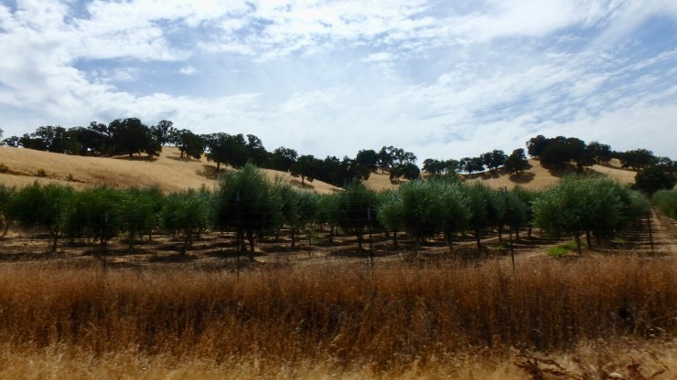 We stopped in Woodland for gas and decided to forego the rest break since we were only about forty miles from home. The terrain was familiar now as we went through orchards of olives and pistachios.