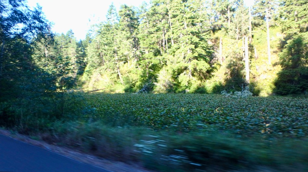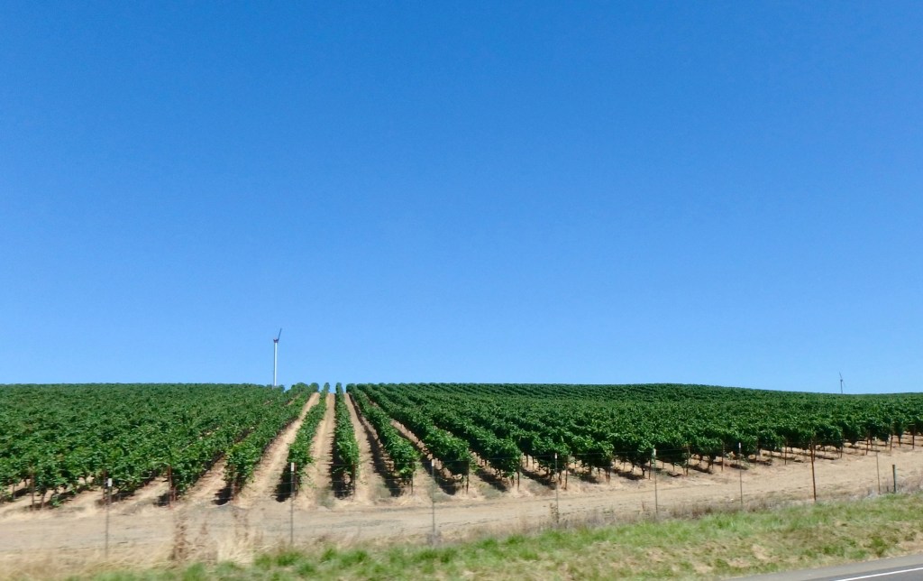 Then it was farmlands and hillsides. We never did see the Pacific. Tom owes Cathy some coastline!