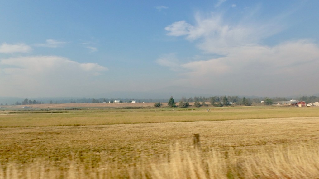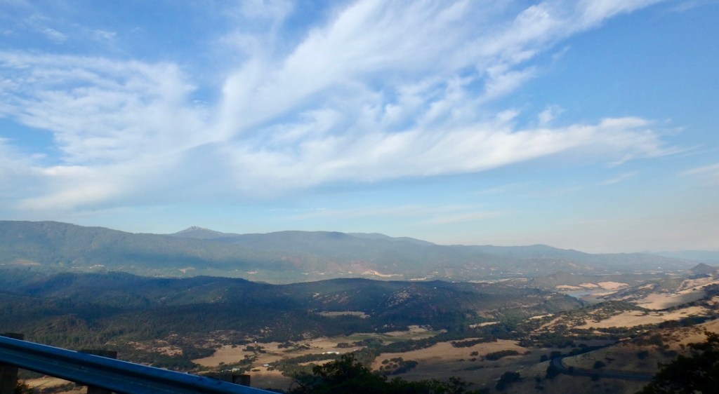 Once on the other side of the ridge, the smoke increased and the visibility was worse. We thought about rerouting but we just kept on the planned route. We think the smoke was from a large California fire in Siskiyou County and it was being swept up against these hills.