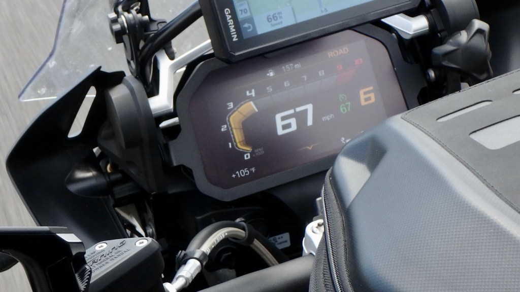 We have a workaround to avoid I-5 through Redding but before we got to Red Bluff, we decided to bullet on I-5 until we could get to Hwy 99 and continue our usual route home. We stopped for several hydration rests. The bike ultimately registered 108 degrees but was consistently between 102 and 104 degrees.